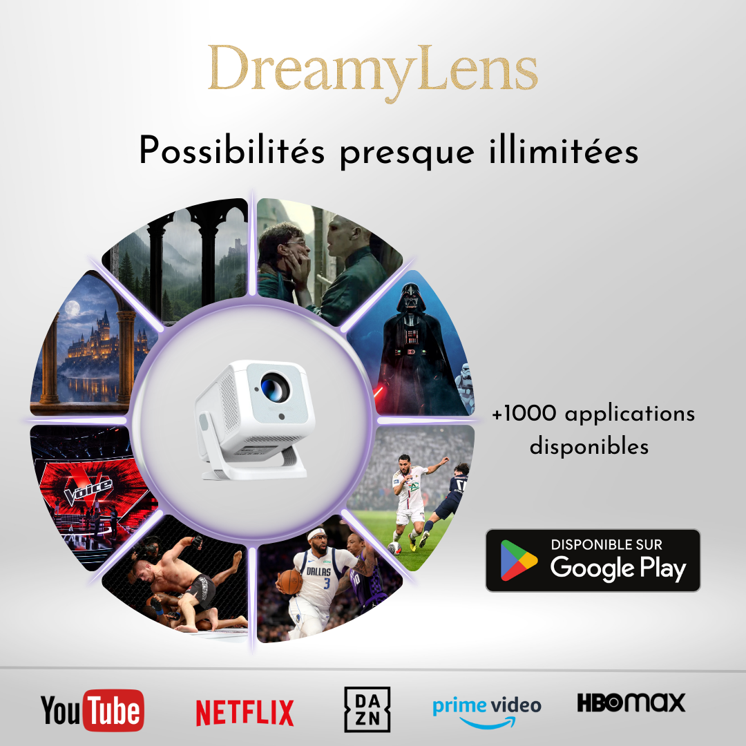 Oui. Le projecteur DreamyLens possède une résolution native de 1920 x 1080 pixels (Full HD) et prend en charge les contenus 4K. Avec ses 420 lumens ANSI et sa lentille à double revêtement, l’image est plus claire, plus lumineuse et plus nette que celle de la plupart des projecteurs compacts.